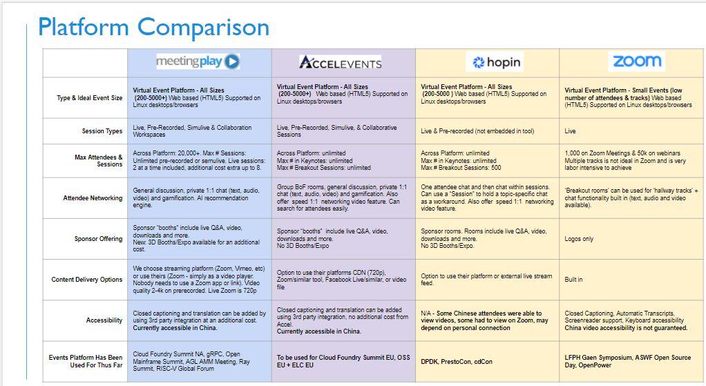 Virtual events incur costs too and organizers must decide whether to pay them or seek funding elsewhere. Consider that given the long dry spell in open source events and conferences, there is pent up demand now among sponsors and open source recruiters who are effectively cut off from much of the open source community. Finding a way to involve sponsors in virtual events helps restore the full circle of open source relationships.